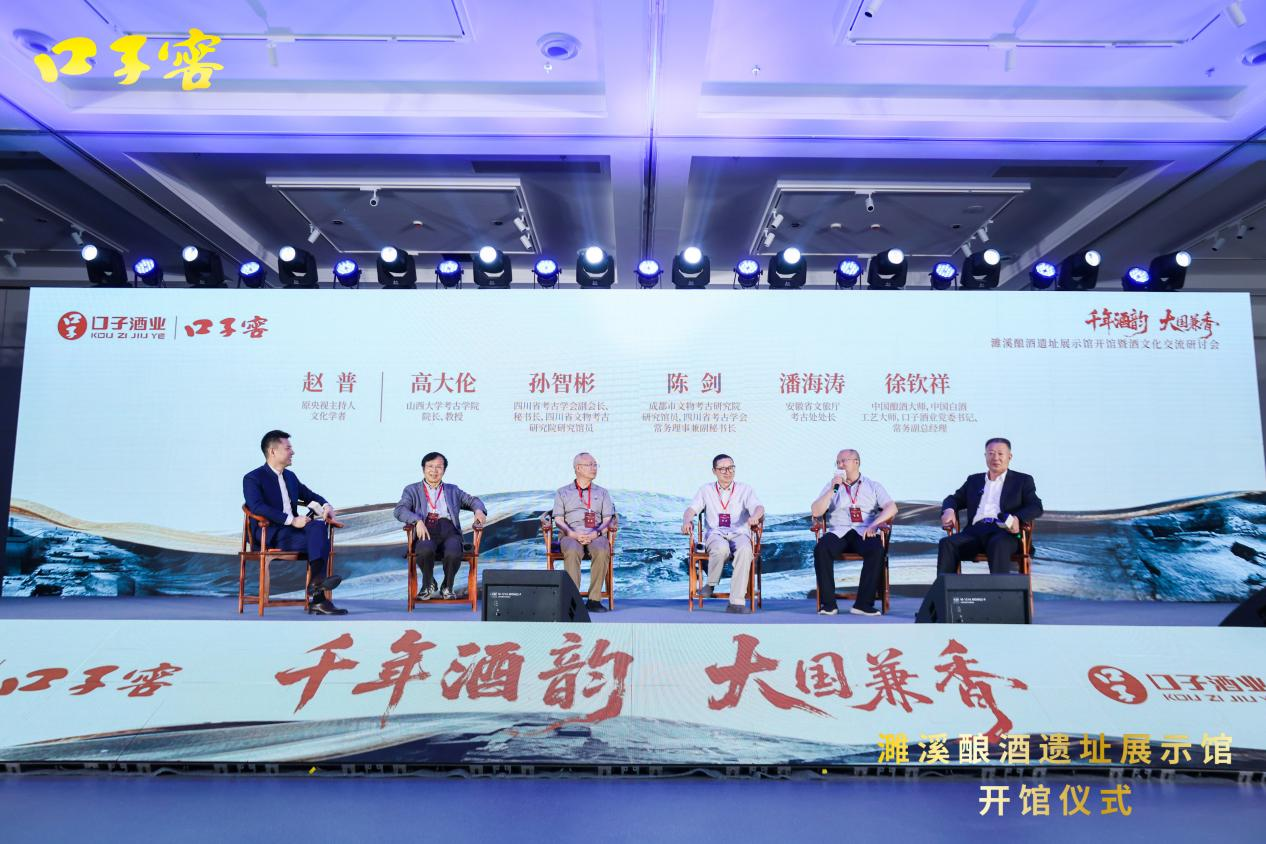 在圆桌对话环节,山西大学考古学院院长、教授高大伦,四川省文物考古研究院研究馆员孙智彬,成都市文物考古研究院研究馆员、四川省考古学会常务理事兼副秘书长陈剑,安徽省文旅厅考古处处长潘海涛与口子酒业、常务副总经理徐钦祥一起,进一步探讨了濉溪酿酒遗址及其展示馆的意义和特点。